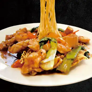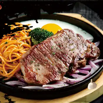Sliced beef, chicken, or shrimp with yakisoba noodles and ground pork; served with an egg on a hot cast iron plate $20